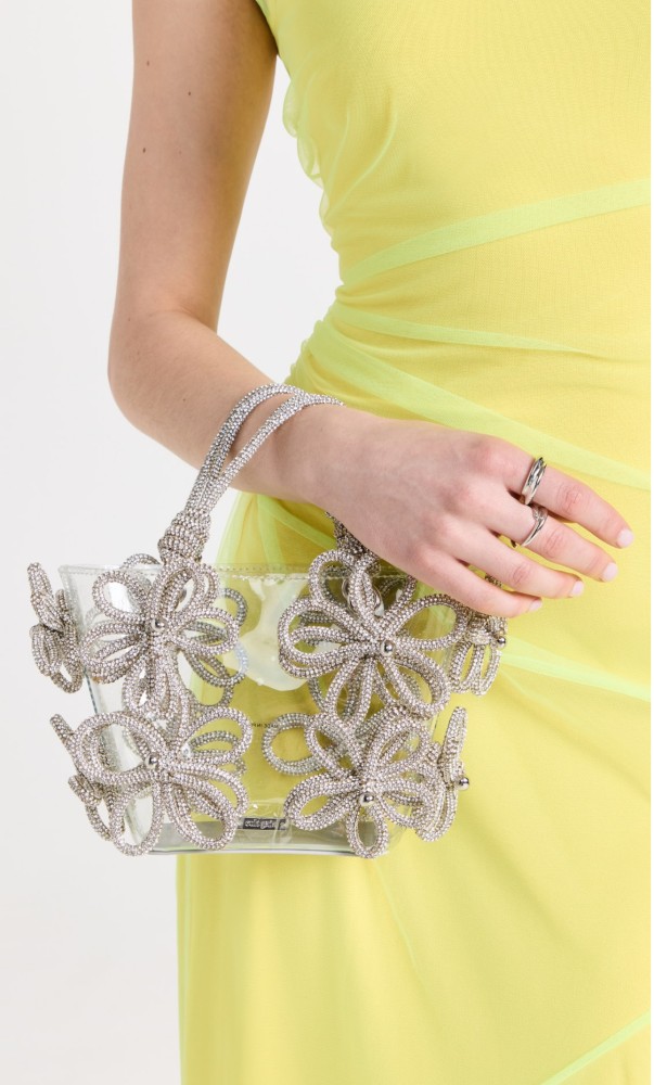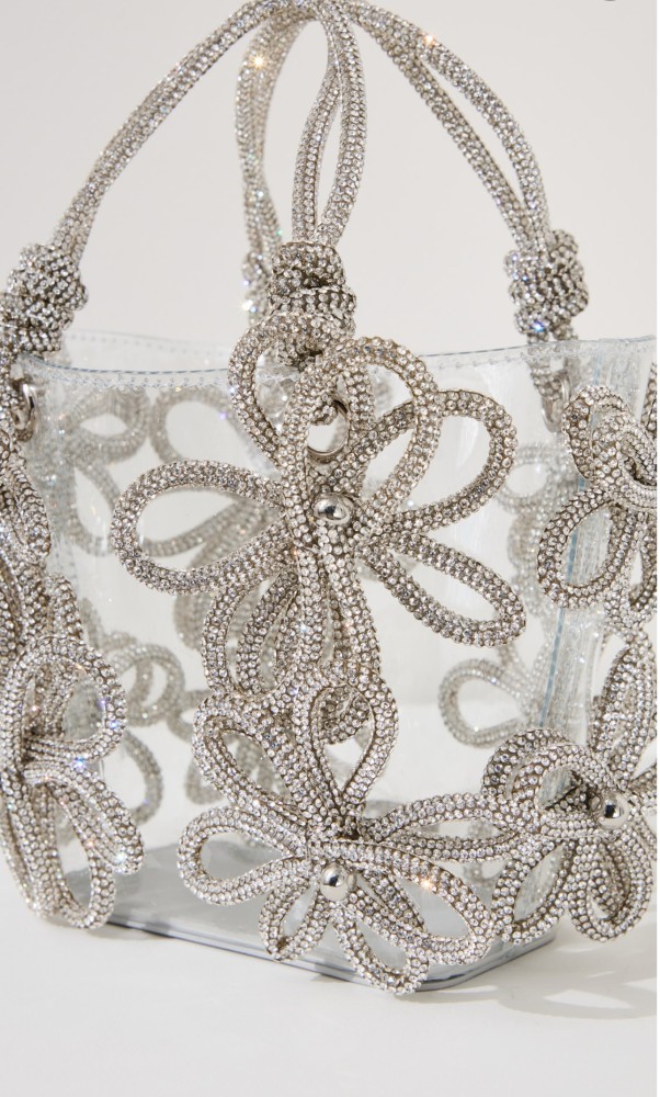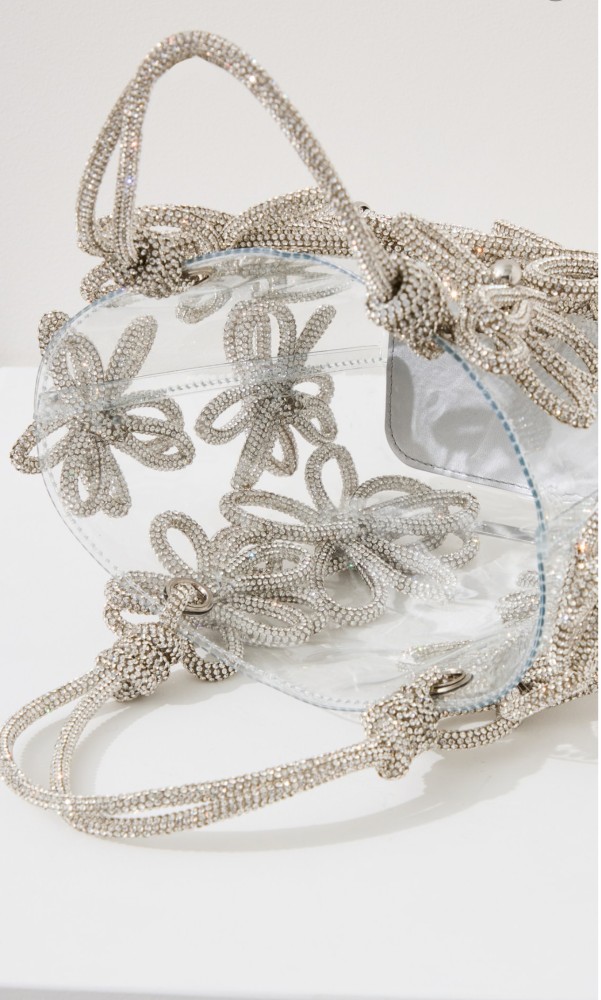 شنطة سهره شفافه مزينه بورود الألماس تنفع للسهرات والمناسبات